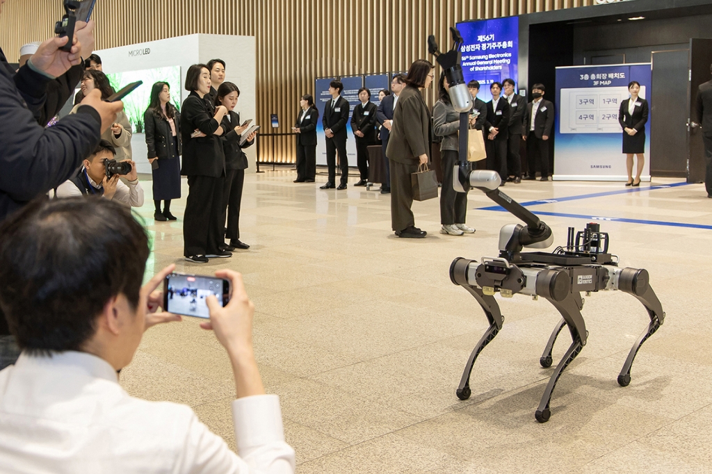 ▲ 삼성전자 제56기 정기 주주총회장 로봇존에서 시연되는 레인보우로보틱스 로봇의 모습