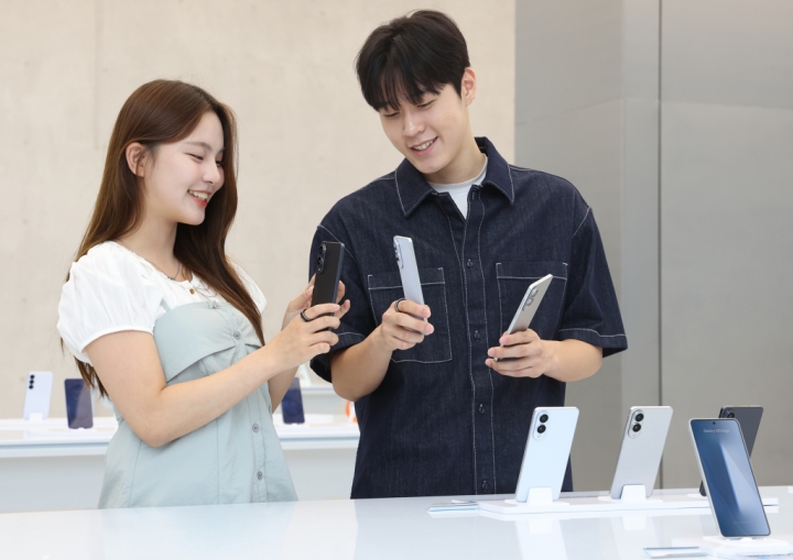 ▲ ‘삼성 강남’에서 ‘갤럭시 S25 엣지’의 초슬림 디자인을 체험하는 모습