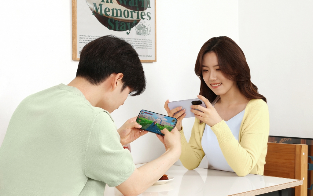 ▲ 삼성전자 모델들이 ‘갤럭시 A36 5G’로 모바일 게임을 즐기는 모습