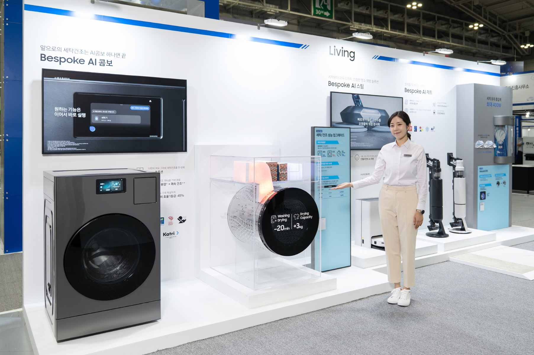 ▲ 삼성전자 모델이 25일부터 28일까지 광주광역시 김대중컨벤션센터에서 열리는 ‘2025 광주미래산업엑스포’ 삼성부스에서 ‘비스포크 AI 콤보’ 세탁건조기를 소개하고 있다.