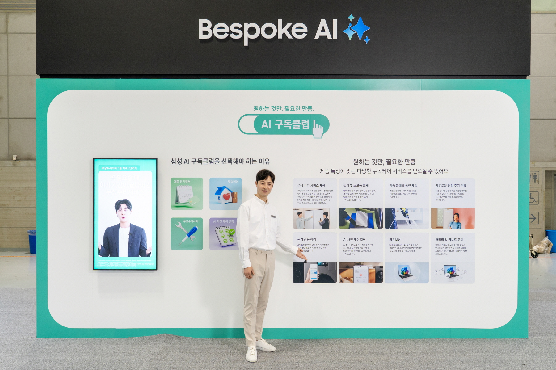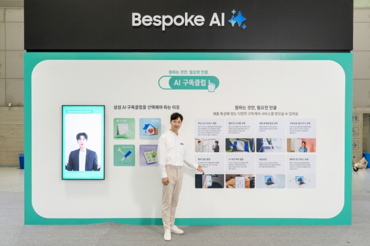 ▲ 삼성전자 모델이 25일부터 28일까지 광주광역시 김대중컨벤션센터에서 열리는 ‘2025 광주미래산업엑스포’ 삼성부스에서 AI 구독클럽을 소개하고 있다.