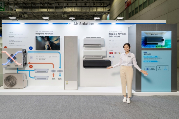 ▲ 삼성전자 모델이 25일부터 28일까지 광주광역시 김대중컨벤션센터에서 열리는 ‘2025 광주미래산업엑스포’ 삼성부스에서 삼성전자 에어솔루션존을 소개하고 있다.