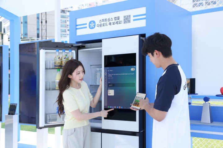 ▲ 대전 중구 한화 이글스파크 ‘갤럭시 체험존’에서 방문객이 ‘갤럭시 Z 폴드7’로 ‘비스포크 AI 패밀리허브’ 연결한 스마트싱스를 경험하는 모습