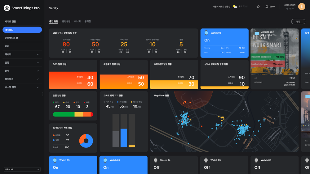 ▲ 갤럭시 워치 기반 B2B 전용 솔루션 ‘스마트싱스 프로 안전관리 솔루션’ 관리자용 대시보드 예시 화면