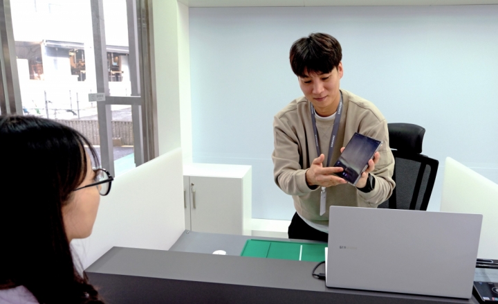 ▲ 삼성스토어 상도점에서 삼성전자서비스 엔지니어가 '바로 서비스'를 제공하는 모습