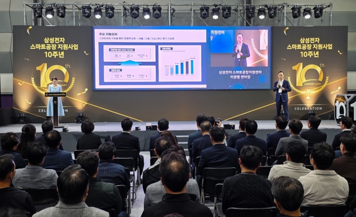 삼성은 스마트공장 지원사업 10주년을 맞아 21일 서울 강남구 코엑스에서 ‘스마트공장 10주년 기념행사’를 개최했다.