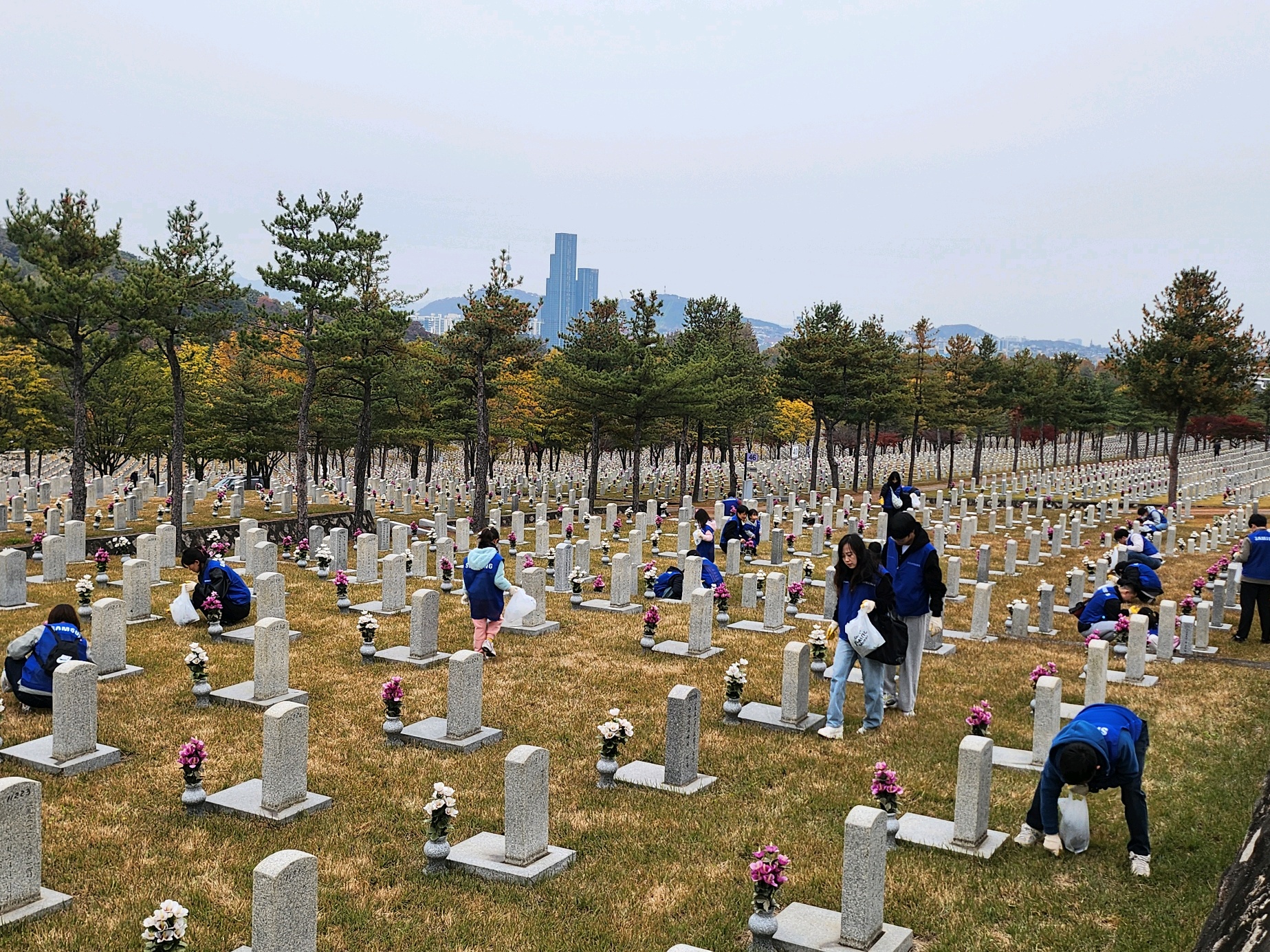 ▲ 삼성전자 임직원들이 11월 8일 국립서울현충원을 찾아 묘역 환경정화 활동을 했다.