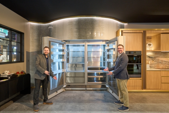▲ 삼성전자 직원이 미국 플로리다주 올란도에서 열린 북미 최대 규모의 주방∙욕실 전시회 ‘KBIS 2026(The Kitchen & Bath Industry Show 2026)’에서 럭셔리 빌트인 ‘데이코(Dacor)’ 컬럼냉장고를 소개하고 있다