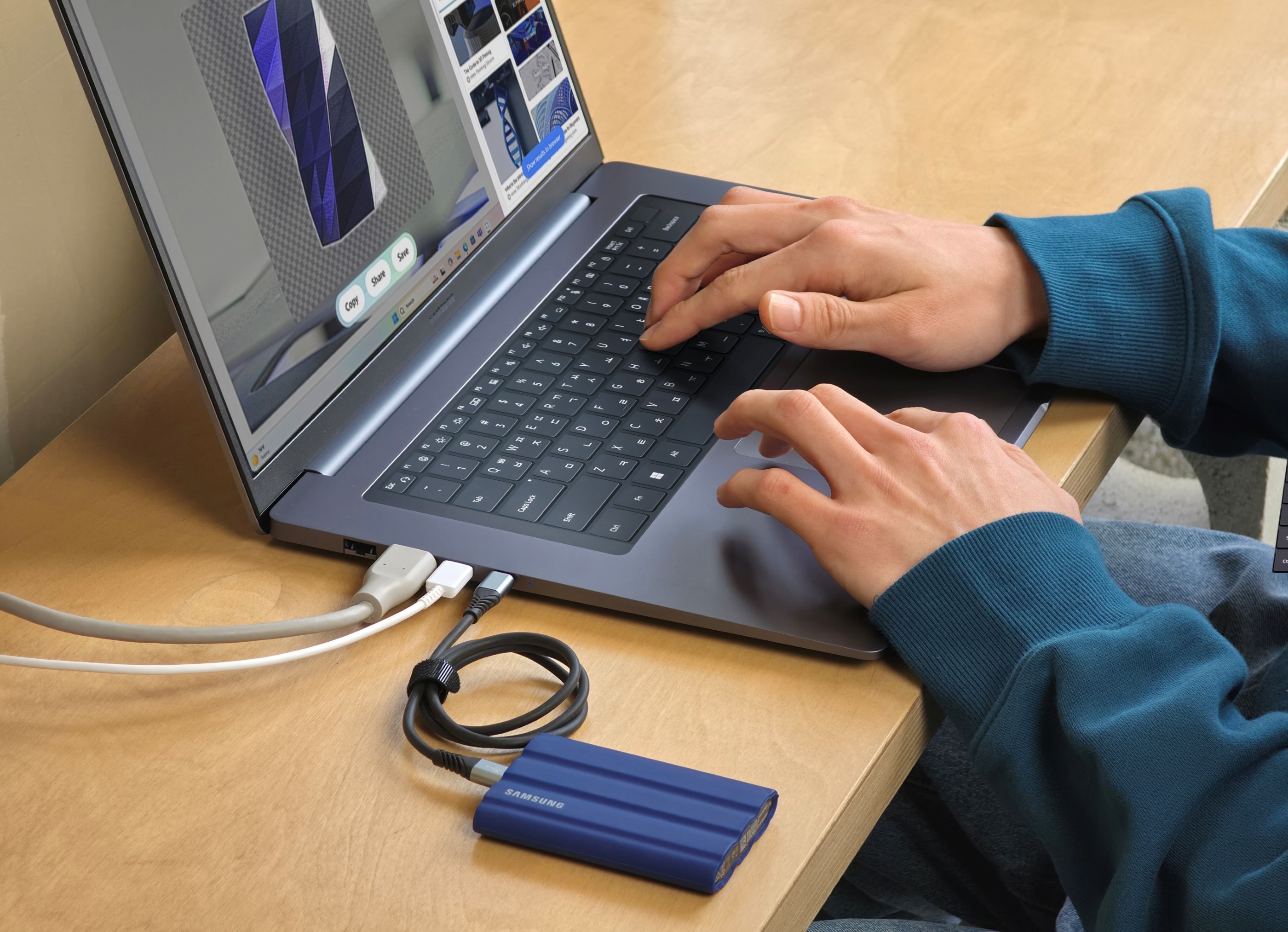 ▲ ‘갤럭시 북6’의 다양한 포트를 활용해 주변 기기를 연결하는 모습