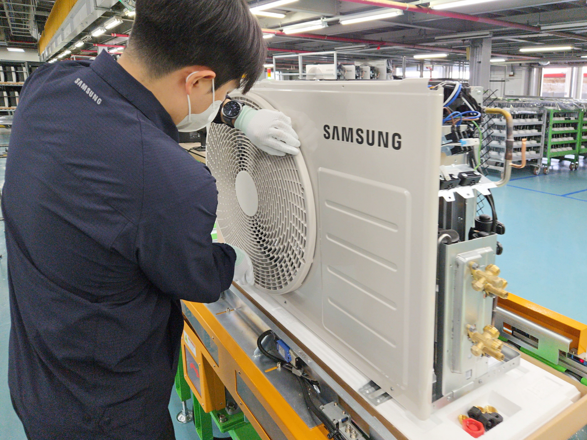▲ 삼성전자가 다가오는 더위로 급증하는 에어컨 수요에 신속히 대응하기 위해 에어컨 생산라인을 풀가동 했다.