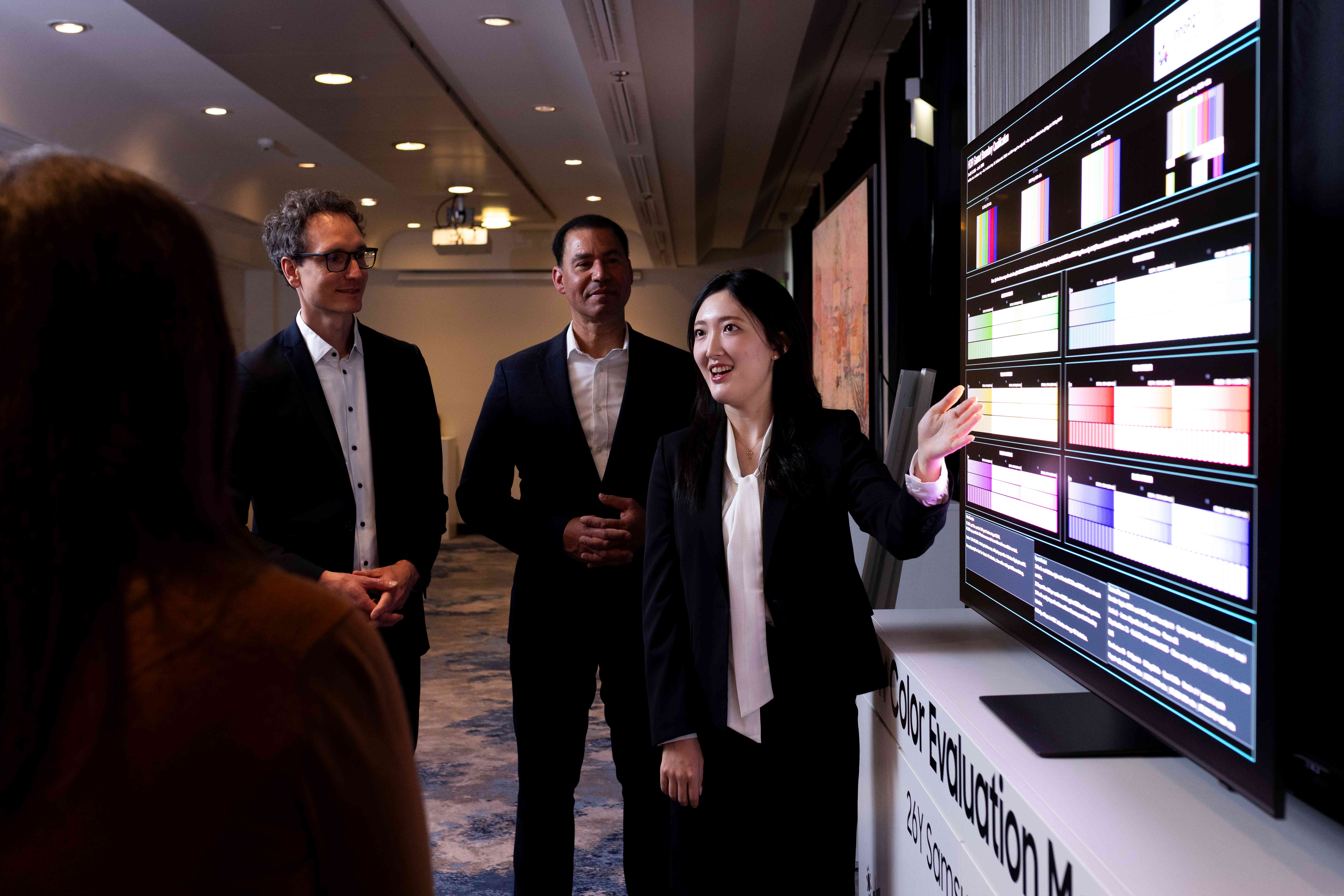▲ 독일 프랑크푸르트에서 열린 삼성전자 ‘2026 유럽 테크세미나’에서 참석자들이 삼성전자의 차별화된 화질을 체험하고 있다.