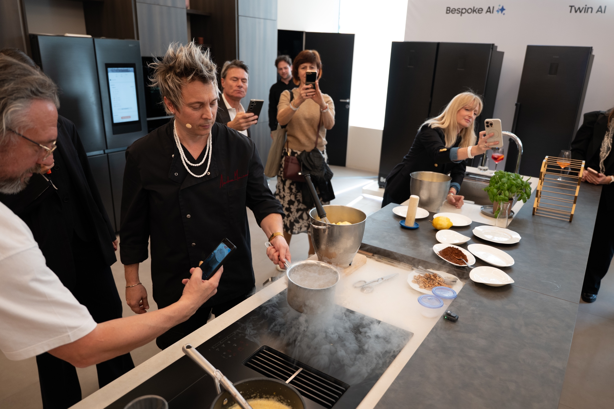 ▲ 21일(현지 시간) 이탈리아 밀라노에서 열린 삼성전자 가전 기술 세미나 ‘더 브리프 밀란’에서 참석자들이 ‘후드 일체형 인덕션’ 신제품을 체험하고 있다.