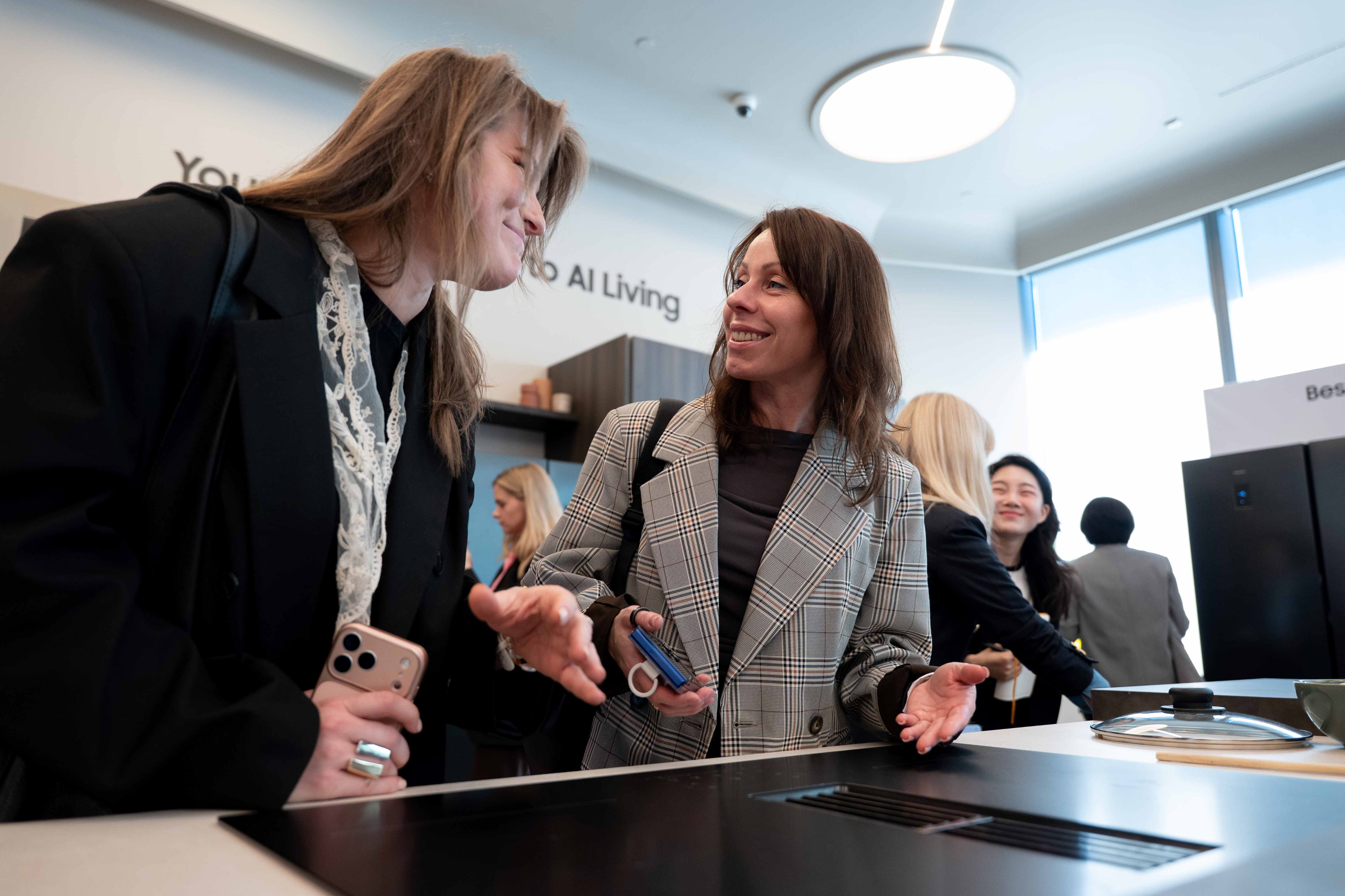 ▲ 21일(현지 시간) 이탈리아 밀라노에서 열린 삼성전자 가전 기술 세미나 ‘더 브리프 밀란’에서 참석자들이 ‘후드 일체형 인덕션’ 신제품을 체험하고 있다.