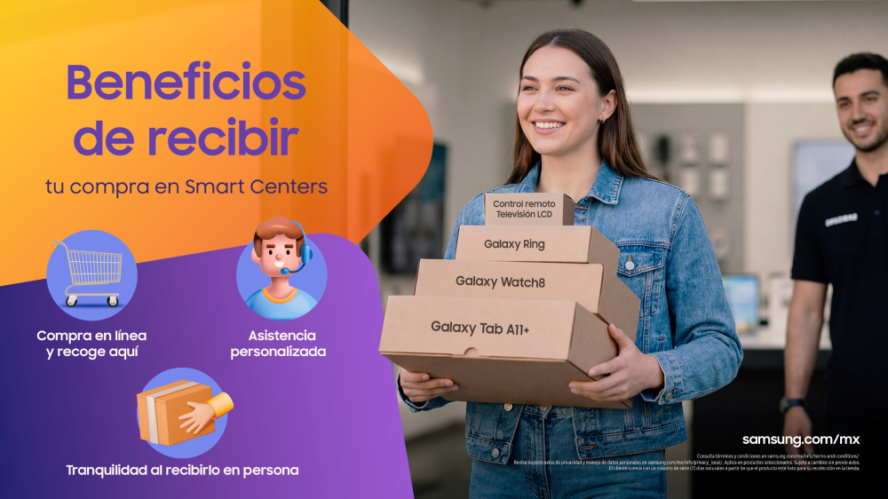 Para quienes buscan rapidez y comodidad, la tienda oficial en línea de Samsung ofrece una alternativa ágil y eficiente: adquirir productos en Samsung.com/mx o a través de la Samsung Shop App y recogerlos directamente en tu Smart Center más cercano. Está opción ideal para tener tu compra en tus manos en menos tiempo y con total confianza.