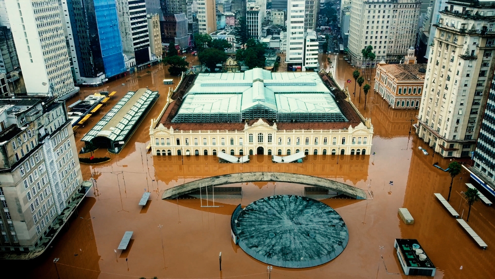 ▲ Las inundaciones de 2024 en Rio Grande do Sul, Brasil, afectaron a casi 2,4 millones de personas y causaron daños generalizados en 478 municipios, incluida Porto Alegre, como se muestra aquí.
