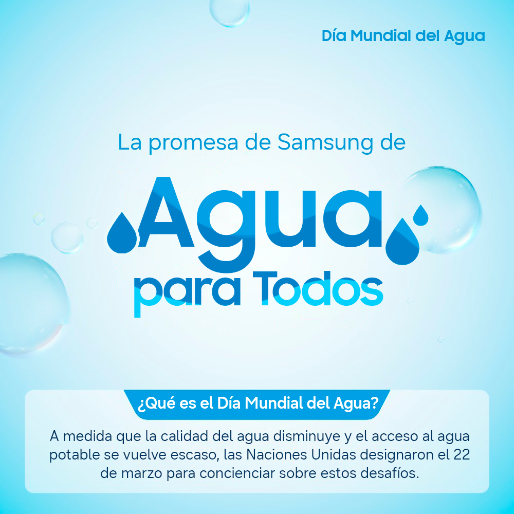 En el marco del Día Mundial del Agua, el 22 de marzo, Samsung Electronics conmemoró su 34º aniversario con iniciativas para proteger los recursos hídricos. Designado por las Naciones Unidas en 1992, el Día Mundial del Agua busca concienciar sobre la escasez y la contaminación del agua a nivel global.