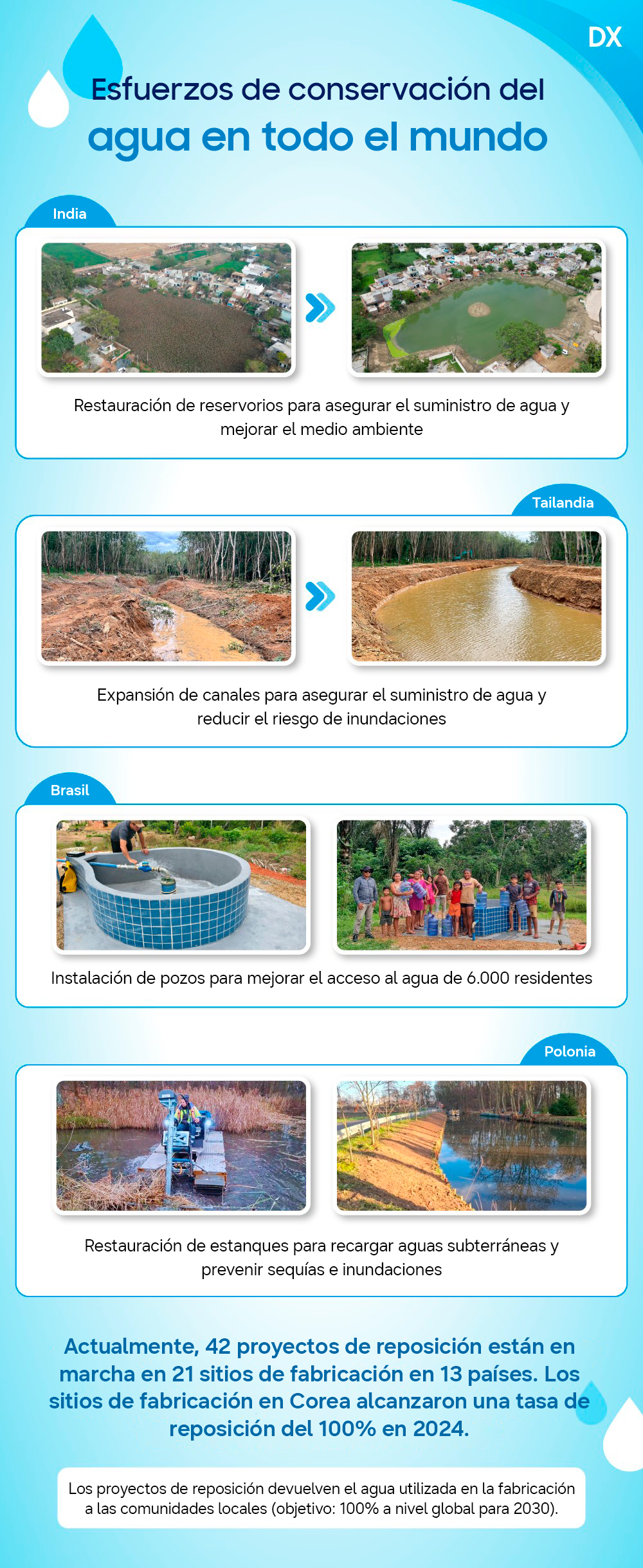 Descubre a continuación los esfuerzos de Samsung para conservar el agua y proteger los recursos para el futuro en estas infografías.