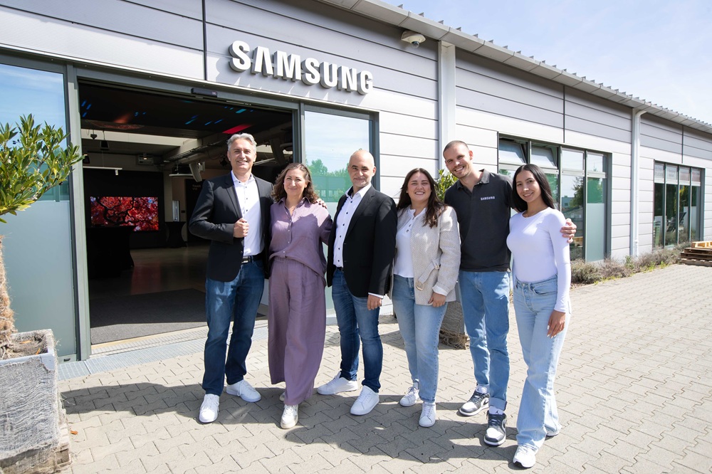 ▲ Representantes de Samsung posan frente al European Display Showcase & Training Centre en Frankfurt, Alemania.