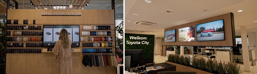 ▲ Toyota ofrece una experiencia de marca consistente con 23,000 pantallas Samsung Smart Signage instaladas en 1,250 concesionarios de 40 países.