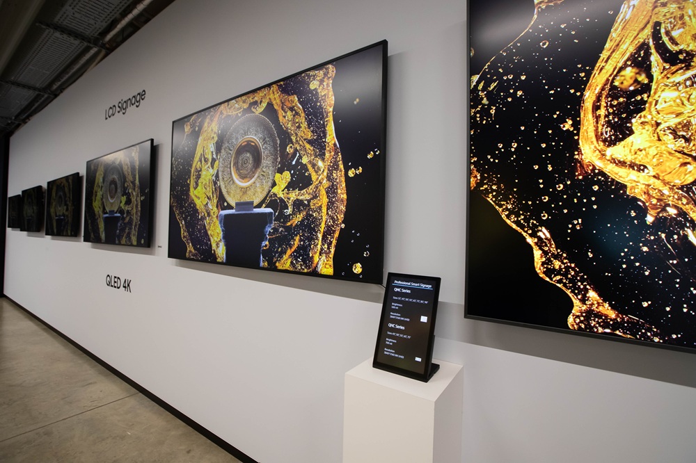 ▲ La línea de pantallas 4K Smart Signage de Samsung, que va de 32” a 98”, se exhibe en el showroom de Frankfurt.
