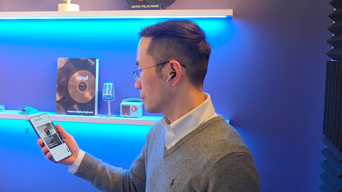 El sistema de cancelación de ruido también presenta avances. El Cancelamiento Activo de Ruido (ANC) mejorado integra un algoritmo optimizado que se adapta al ajuste y la forma del oído de cada usuario. Incluso en una sala de exposiciones con alto nivel de ruido, el ANC crea una experiencia inmersiva similar a la de un espacio de escucha silencioso y personal. Además, el rango ampliado de ajuste del ecualizador garantiza una calidad de sonido constante, sin variaciones tonales, sin importar la forma en que se utilicen los audífonos.