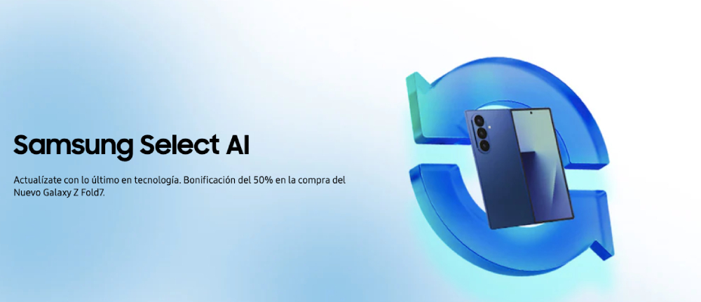 Entre los principales beneficios se encuentra Samsung Select AI, el programa de actualización de Samsung que permite cambiar tu smartphone Galaxy por un modelo más reciente o de mayor gama, con la posibilidad de recibir 12 meses después una bonificación de hasta 50% en el monto de tu nueva compra al renovar tu producto, siempre que el dispositivo cumpla con las condiciones establecidas en el reglamento. La lista de smartphones participantes incluye los nuevos Galaxy Z Fold7, Z Flip7 y Z Flip7 FE.