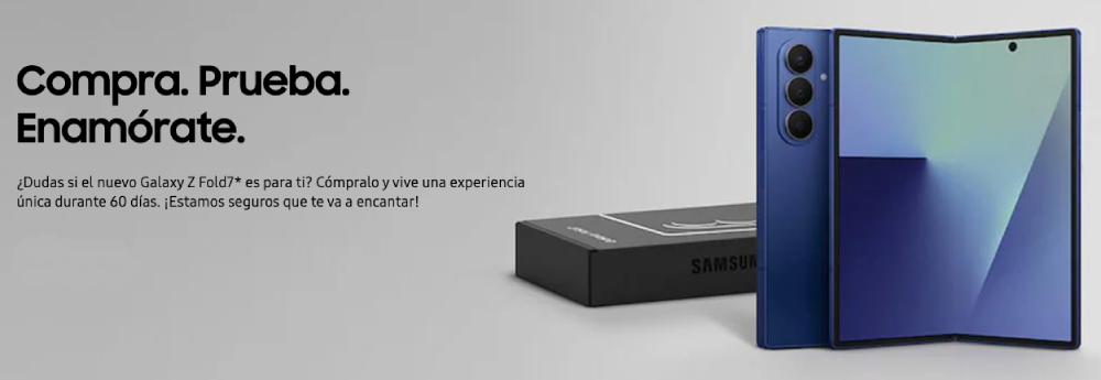 Otra oferta exclusiva de la plataforma de ventas de Samsung es el programa Compra y Prueba, ya consolidado en pantallas y Soundbars seleccionados de la marca, y que ahora llega también a los smartphones. Disponible en Samsung.com/mx y en la App Samsung, este beneficio permite probar el Galaxy Z Fold7 por hasta 60 días. Si no quedas satisfecho, puedes devolver el producto y recibir el reembolso total del valor invertido, sin cargos adicionales ni mensualidades. De esta manera, se tiene total libertad para experimentar el smartphone con tranquilidad y decidir si desean quedarse con el producto.