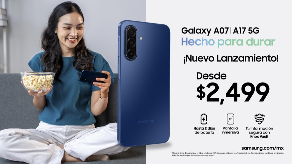 A partir del 26 de septiembre, los Galaxy S25 FE, A17 y A07, las Galaxy Tab S11 Ultra, Tab S11 y Tab S10 Lite, así como los Galaxy Buds3 FE, podrán adquirirse en tiendas físicas Samsung, en Samsung.com/mx y en la Samsung Shop App, con beneficios exclusivos como:
