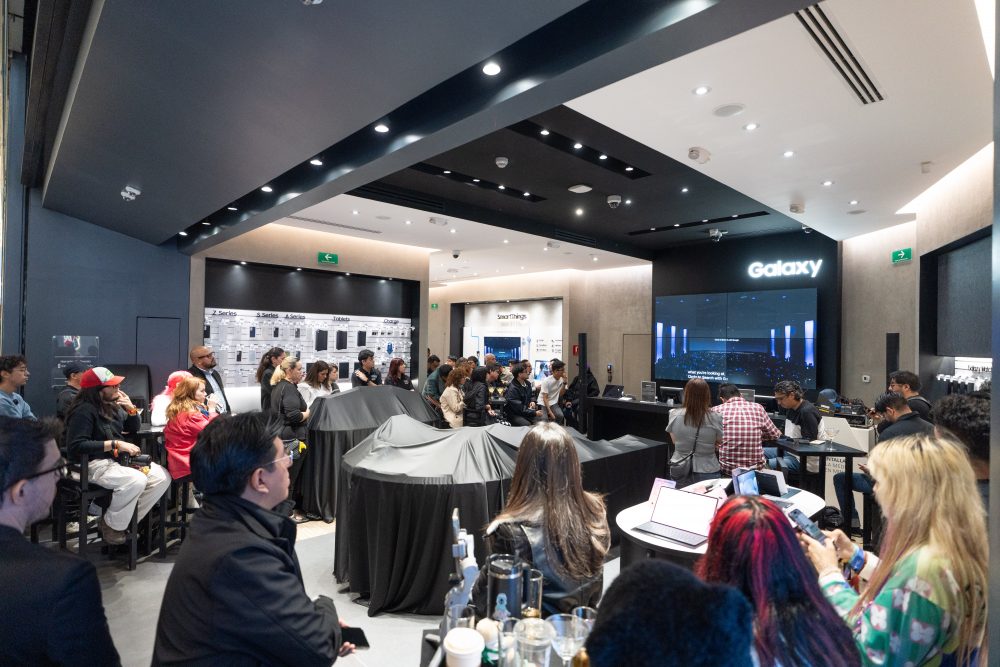 El evento en vivo del Galaxy Unpacked se mostró en todas las pantallas de la tienda y captó la atención de los asistentes con todas las novedades de Samsung en tecnología móvil. Al terminar la transmisión, llegó el momento que todos esperaban cuando se hizo la presentación de los lanzamientos de Samsung, y en mesas de experiencia pudieron ser de los primeros en probar todas las novedades de estos nuevos dispositivos.