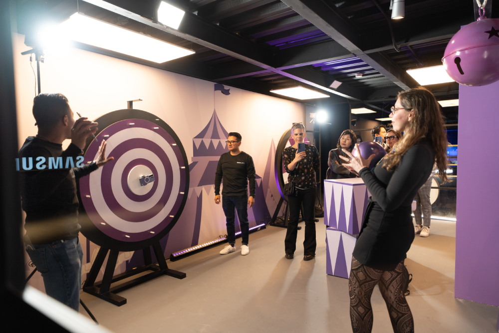 Uno de los espacios más llamativos fue una instalación inspirada en un vagón del metro, donde los invitados pudieron poner a prueba la pantalla de Privacidad del Samsung Galaxy S26 Ultra. Desde distintos ángulos, resultó imposible ver el contenido del dispositivo, demostrando su capacidad para proteger la información del usuario en espacios públicos.