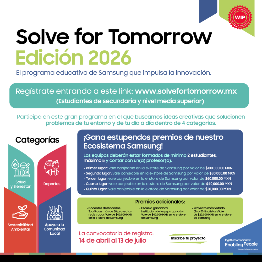 Para más información sobre Samsung Solve for Tomorrow y su convocatoria, visita SolveForTomorrow.mx.
