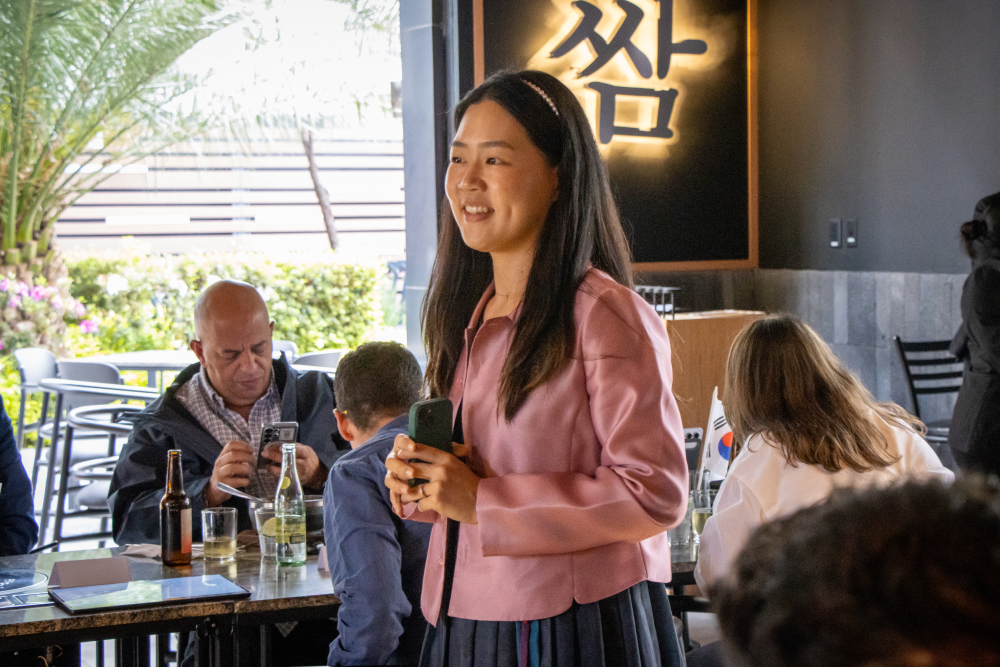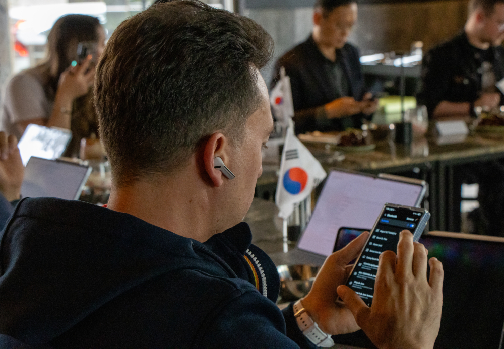 La velada comenzó con una cálida bienvenida por parte de la chef y dueña del restaurante, Sujin Lee (@su.de.ssam), quien ofreció unas emotivas palabras en coreano. Gracias a la función Live Translate, los asistentes pudieron comprender el mensaje en tiempo real, demostrando cómo la tecnología puede acercar culturas a través del lenguaje.