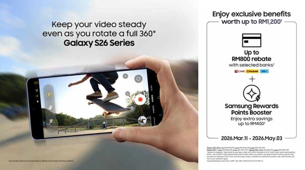 Until 3 May 2026, the Galaxy S26 series is available[4] for purchase with these amazing promotions. Customers can get a rebate of up to RM800 upon purchase with eligible CIMB, Maybank or RHB credit or debit cards. Customers can also redeem up to RM400 with their Samsung Rewards Points Booster for their purchase as well!