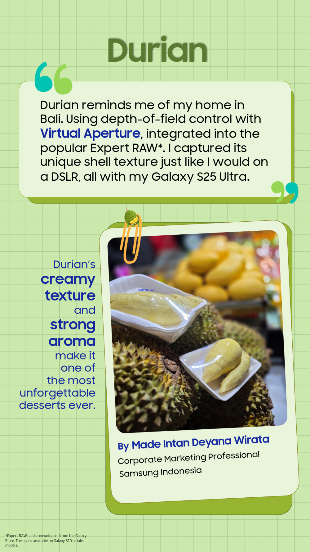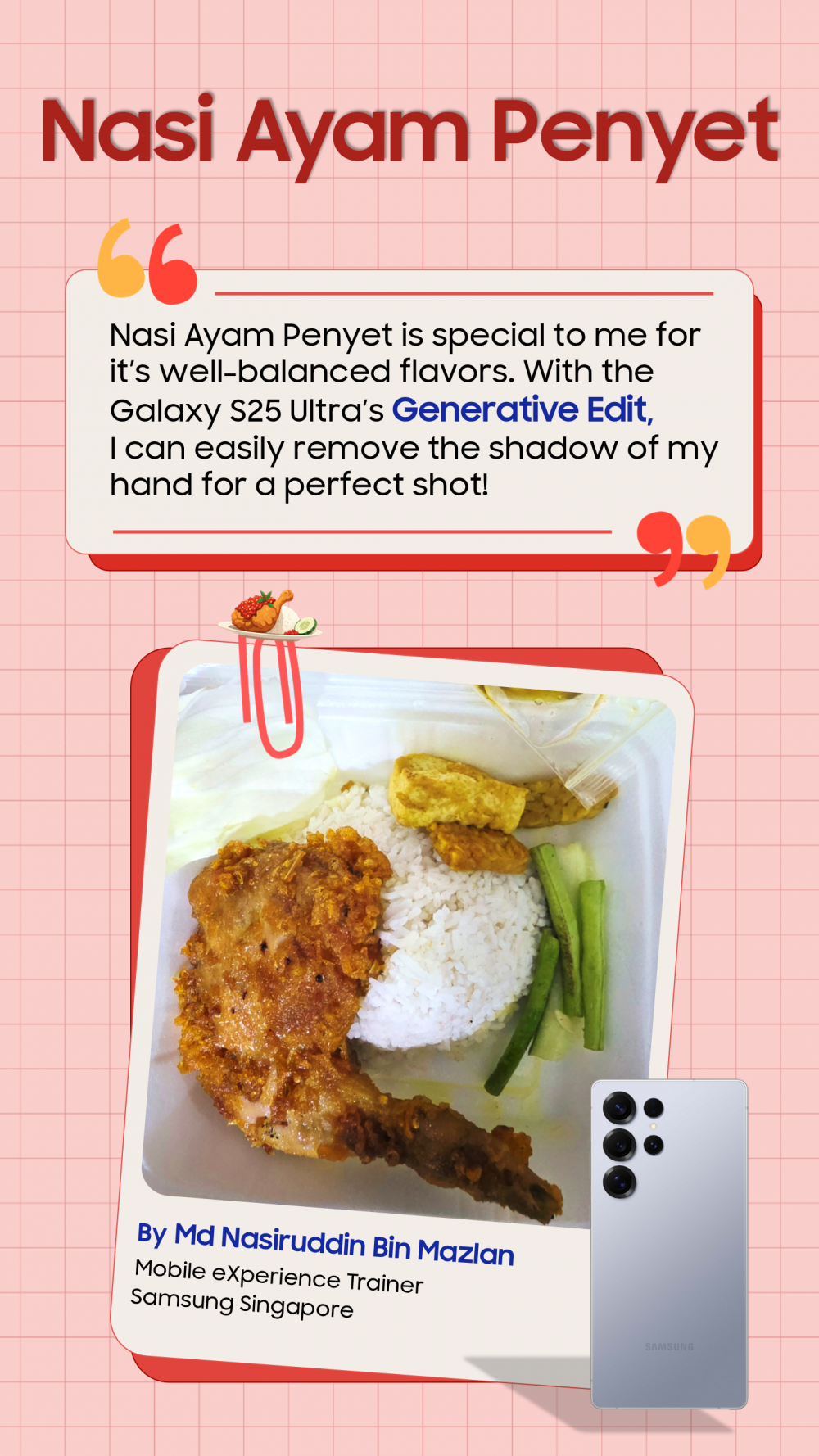 In this piece, Samsung employees across Southeast Asia and Oceania (SEAO) share their personal stories about favorite local dishes with vibrant photos of delectable flavours and textures!