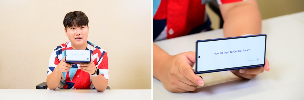 ▲ (From left) Samsung Supporters Hajung Kim and Wansu Kim use the new accessibility features applied to One UI 8.