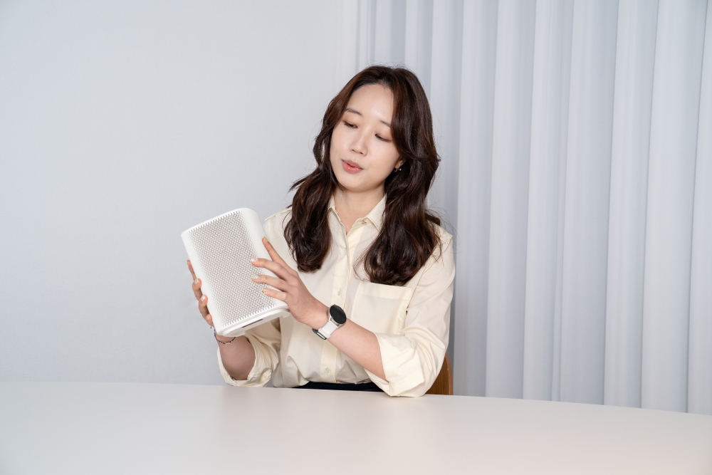 “We aimed for a design that would blend naturally into any space and still look cohesive even when moved around — like a beautiful vase placed on furniture,” said Kim. “By shifting from the traditional horizontal form to a vertical design, we also improved space efficiency.”