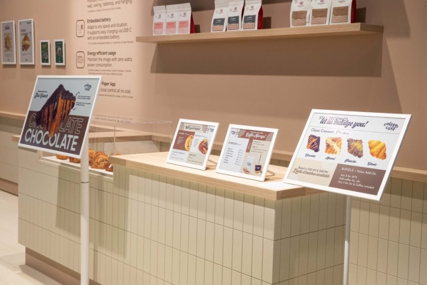 Samsung Color E-Paper offers an impactful alternative to printed posters in day-to-day retail operations. At ISE 2026, Samsung showed how its 13-inch, 20-inch[1] and 32-inch displays can work together within a single retail environment, using familiar proportions and formats that allow digital signage to sit naturally alongside printed materials and existing displays.