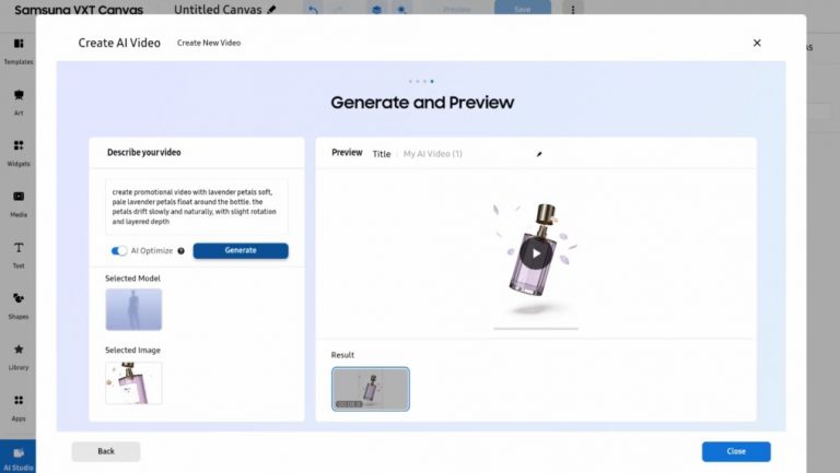 Als het maken en beheren van content een punt van zorg is, biedt Samsung VXT (Visual eXperience Transformation) een oplossing. Met Samsung VXT kunnen bedrijven aangesloten schermen[3] op afstand beheren en eenvoudig signage-ready videocontent creëren. De recent toegevoegde AI Studio-app[4] maakt het zelfs mogelijk om op basis van één productafbeelding en een korte tekstprompt direct visueel aantrekkelijke content te creëren.