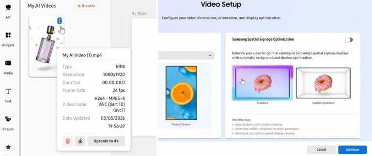 AI Studio van Samsung VXT helpt bij het maken van videocontent die geschikt is voor signage.