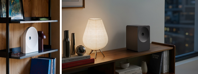 ▲ Las Music Studio 5 (izquierda) y Music Studio 7 se integran en una variedad de espacios habitables, conectando el sonido con el espacio y las experiencias familiares con nuevas funciones.
