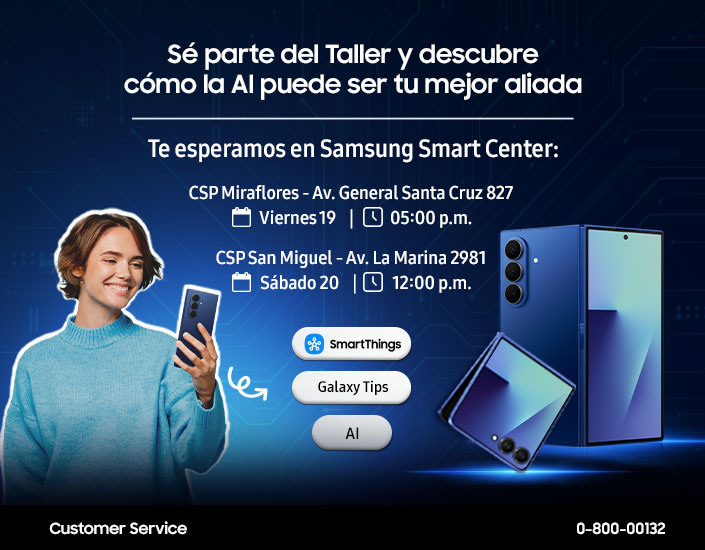 Para temas relacionados a servicio de atención al cliente, por favor ingrese a samsung.com/pe/support para recibir asistencia. Para consultas sobre medios y prensa, favor de contactar a prensa.peru@samsung.com.