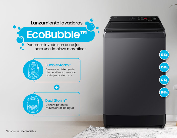 Las nuevas Lavadoras Ecobubble™ ofrecen una limpieza profunda con mayor cuidado en las prendas, usando menos agua y energía, simplificando la rutina del hogar.