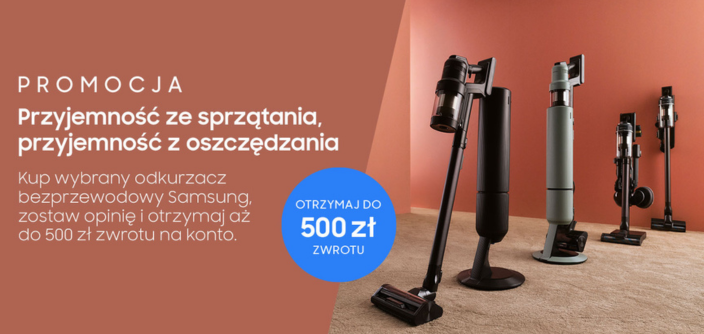 Przyjemność ze sprzątania, przyjemność z oszczędzania. Do 500 zł zwrotu za zakup odkurzacza pionowego Samsung