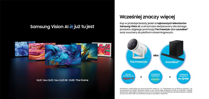 Kup nowy telewizor Samsung na 2025 rok i odbierz nagrody