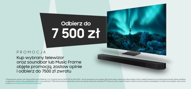 Zyskaj do 7500 zł zwrotu kupując telewizor Samsung wraz soundbarem lub głośnikiem