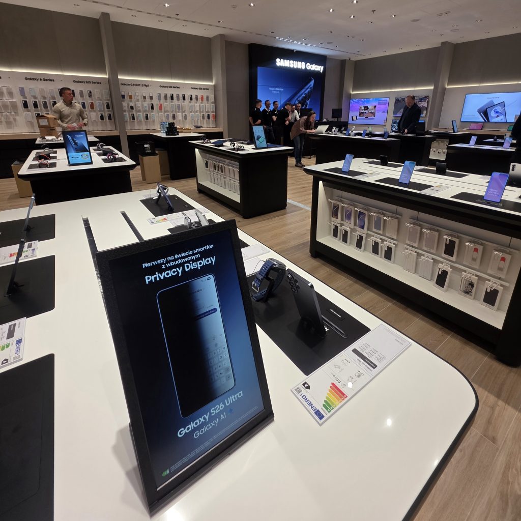Odwiedzający mogą tu nie tylko zobaczyć, ale przede wszystkim przetestować najnowsze urządzenia i rozwiązania marki – od smartfonów i tabletów, przez audio, po telewizory. W centrum uwagi znajduje się najnowszy smartfon Samsung Galaxy S26 Ultra, wyposażony w zaawansowany system aparatów, wydajny procesor oraz funkcję Privacy Display (Prywatny wyświetlacz), która chroni treści przed spojrzeniami osób postronnych. Klienci mogą także sprawdzić możliwości Galaxy AI, posłuchać krystalicznego dźwięku ze słuchawek Galaxy Buds 4 Pro oraz przekonać się o jakości obrazu w telewizorach Samsung z technologią Vision AI.