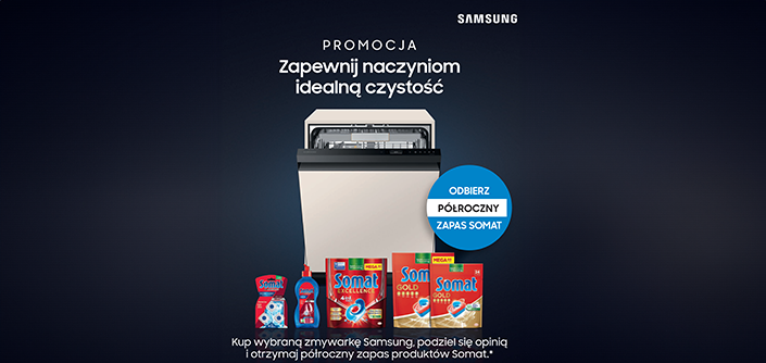 Kup zmywarkę Samsung i otrzymaj zapas produktów do zmywania Somat na pół roku