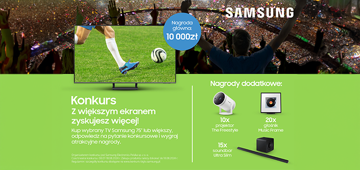 Kup wybrany TV Samsung 75” lub większy, odpowiedz na pytanie konkursowe i wygraj atrakcyjne nagrody