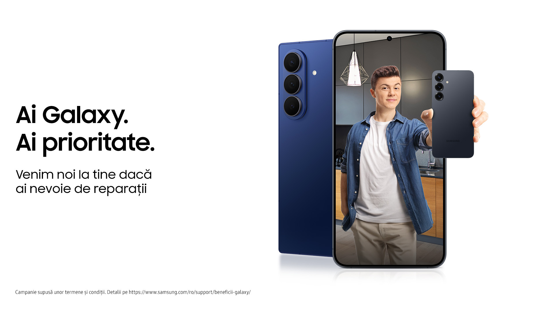 Samsung a ridicat experiența post-vânzare la un nou nivel, lansând servicii premium de service dedicate utilizatorilor Galaxy S și Z din București și zonele apropiate. Acestea sunt gândite special pentru confortul tău, economisirea timpului și flexibilitate totală. Beneficiile sunt prezentate și aici: https://www.samsung.com/ro/support/beneficii-galaxy/.