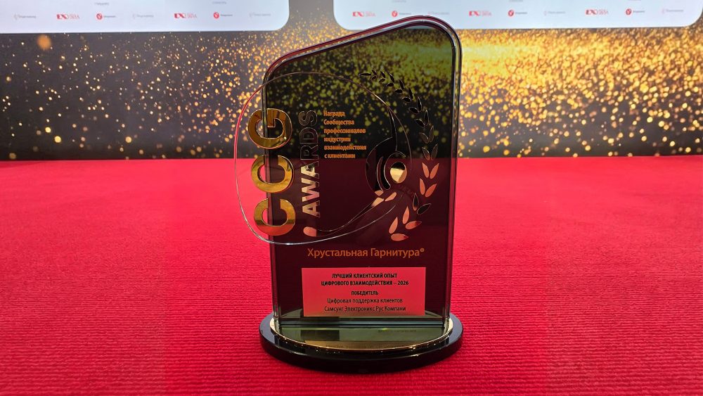Samsung Electronics получила высшую награду “Победитель” Премии CCGURU AWARDS | «Хрустальная Гарнитура» — одной из ключевых профессиональных наград в области клиентского сервиса и контактных центров. Компания была отмечена в номинации «Лучший клиентский опыт цифрового взаимодействия» за системный подход к развитию цифровых каналов поддержки и устойчивые результаты в управлении клиентским опытом.